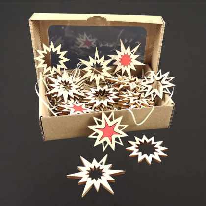 AMADEA Drevené ozdoby – sada 25 ks drevených ozdôb – hviezdy veľkosť 4,5 – 8 cm, český výrobok