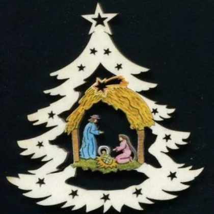 AMADEA Drevená ozdoba farebná stromček s betlehemom 9 cm