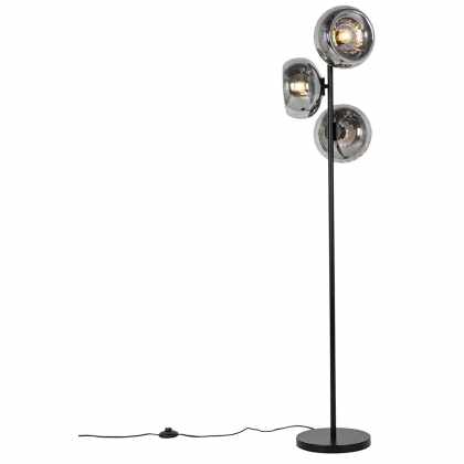 Stojacia lampa Art Deco čierna s dymovým sklom 3-svetlá – Ayesha
