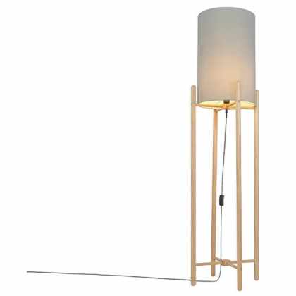 Vidiecka stojaca lampa drevená so šedým odtieňom – Lengi