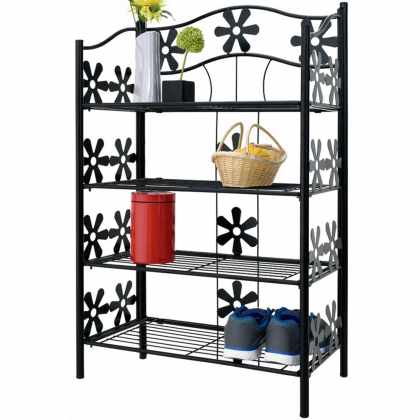 InternetovaZahrada Kovová polica s kvetinovým vzorom – 90x60x30 cm