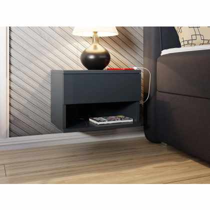 Závesný nočný stolík Abercja, Farba: antracit / lesklý antracit