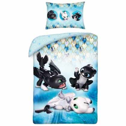 Posteľné obliečky do malej detskej postieľky, alebo kolísky Ako si vycvičiť draka 3 – 100% bavlna – 60 x 40 cm + 100 x 135 cm