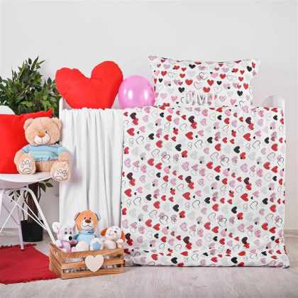 Obliečky detské bavlnené Srdiečka EMI: Štandardný set jednolôžko obsahuje 1x 140×200 + 1x 70×90