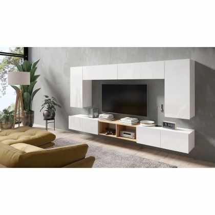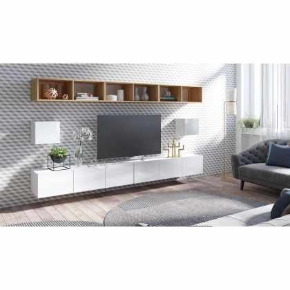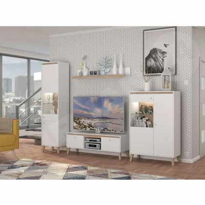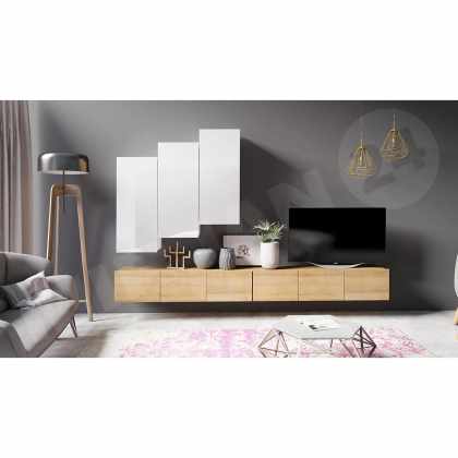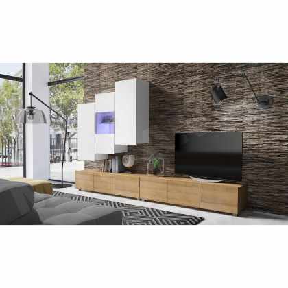 Obývacia stena Bralani XXIII, Farby: biela / biely lesk + dub zlatý