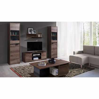 Nábytok Verdek I, Farby: dub monastery / dub monastery + čierny lesk, Osvetlenie: bez osvetlenia