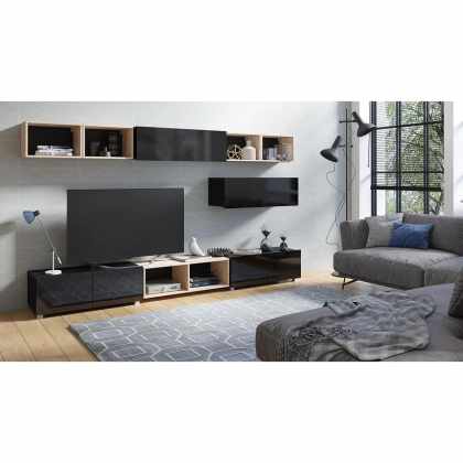 Obývacia stena Bralani XXVI, Farby: čierna + čierny lesk + dub artisan