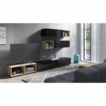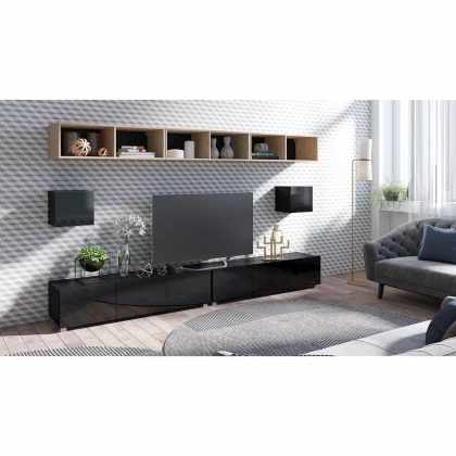 Obývacia stena Bralani XXXIV, Farby: čierna + čierny lesk + dub artisan