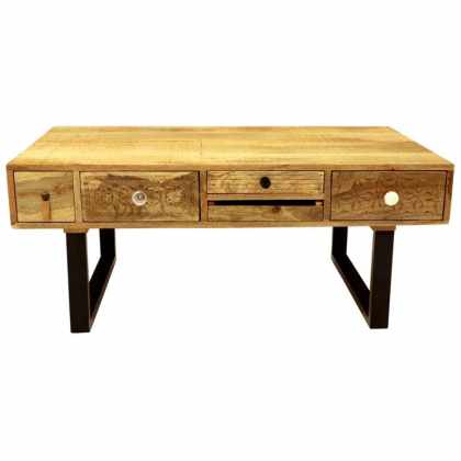 Konferenčný stolík Manu s kovovými nohami 110x45x60 indický masív mango