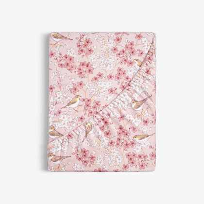 Goldea bavlnená napínacia plachta – vtáčiky v ružovej záhrade 140 x 200 cm