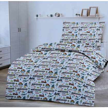 Obliečky deluxe bavlnené detské Vláčik 200x140cm+90x70cm TiaHome