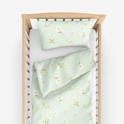 Goldea detské bavlnené obliečky do postieľky – harmanček na svetlo zelenom 90 x 120 a 40 x 60 cm