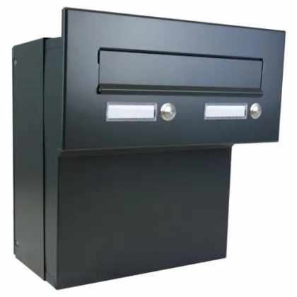 DOLS F-041 ČD-3 RAL7016 – poštová schránka na zamurovanie, s 2x menovkou a 2x zvončekovým tlačidlom, antracit