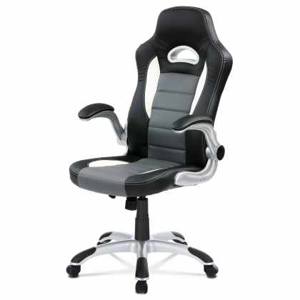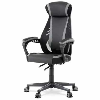 Herné kreslo, šedá, čierna ekokoža a čierna látka a sieťovina MESH, PCA mach KA-Y213 GREY