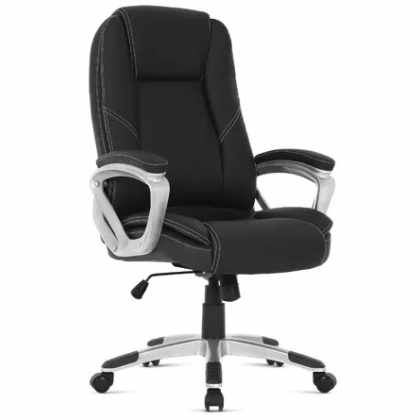 Kancelárske kreslo v čiernej ekokoži, kríž a podrúčky v striebornom plaste, kolieska pre tvrdé podlahy KA-Y282 BK