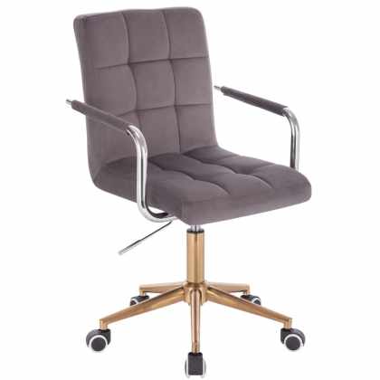 LuxuryForm DESIGN Stolička VERONA VELUR na zlaté podstave s kolieskami – tmavo šedá