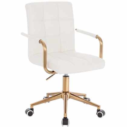 LuxuryForm DESIGN Stolička VERONA GOLD na zlatej podstave s kolieskami – biela