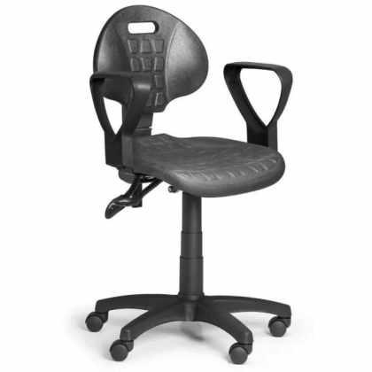 Pracovná stolička PUR s podpierkami rúk, asynchrónna mechanika, pre tvrdé podlahy, sivá