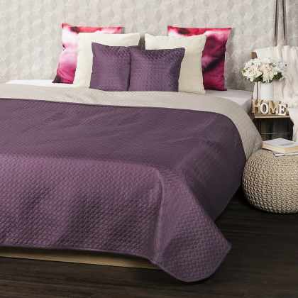 4Home Prehoz na posteľ Doubleface fialová/béžová, 220 x 240 cm, 2x 40 x 40 cm