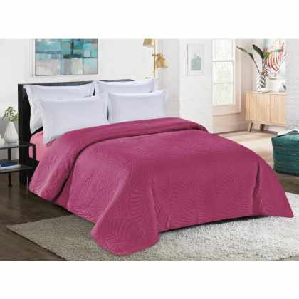 Fialový prehoz na posteľ so vzorom LEAVES Rozmer: 200 x 220 cm