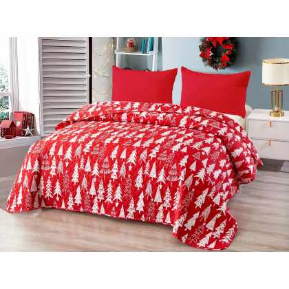 Červený prehoz na posteľ CHRISTMAS TREES Rozmer: 220 x 240 cm