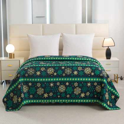 Prehoz na posteľ SNOWFLAKES zelenomodrý Rozmer: 200 x 220 cm