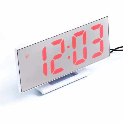 Pronett XJ3821 Multifunkčné zrkadlové hodiny s budíkom, biele s červenými číslicami