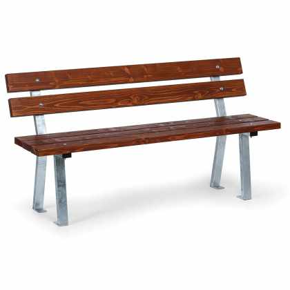 Vonkajšia lavička WOODY s operadlom, zinková, 1500 mm, mahagón tmavý