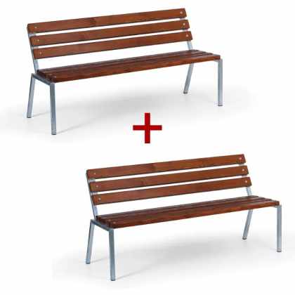 Vonkajšia lavička STACK 1+1 ZADARMO, stohovateľná, s operadlom, zinkovaná, 1500 mm, mahagón tmavý