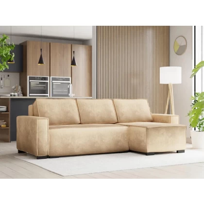 Krémová rozkladacia rohová pohovka SMART VELVET, obojstranná