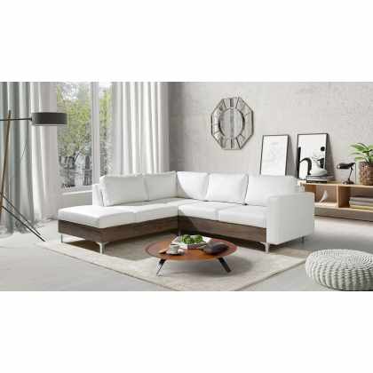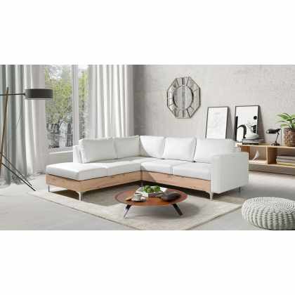 Rohová pohovka Hermes Wood, Farby: ekokoža Soft 017 (biela), Farby nožičiek: dub artisan, Strana: ľavá