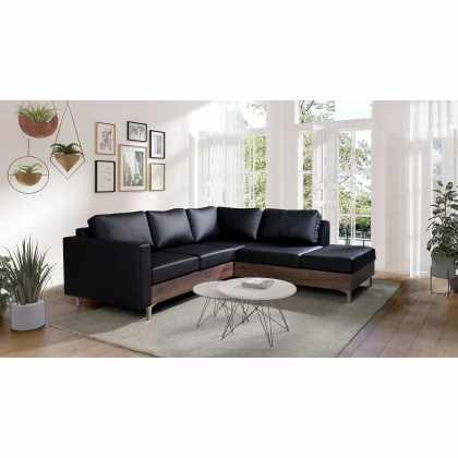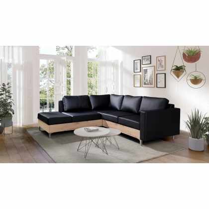 Rohová pohovka Hermes Wood, Farby: ekokoža Soft 011 (čierna), Farby nožičiek: dub artisan, Strana: ľavá