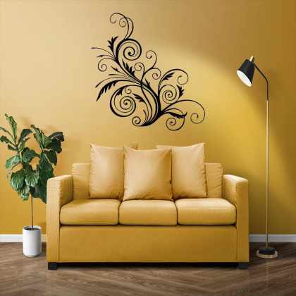 Veselá Stena Samolepka na stenu na stenu Ornament kvetina Farba: černá