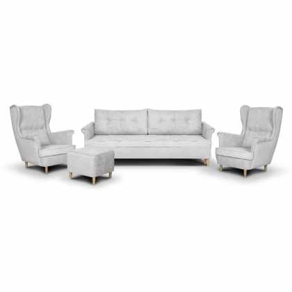 Súprava ELIA Ušiak Strieborná ( POHOVKA+2x KRESLO+PODNOŽKA)