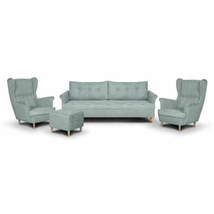 Súprava ELIA Ušiak Mentolová ( POHOVKA+2x KRESLO+PODNOŽKA)