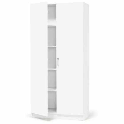 Drevená úložná skriňa THEO s veľkými plnými dverami, 1000x320x2100 mm, biela