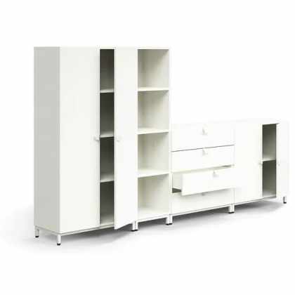 Skriňa QBUS + 4 priehradky + 4 zásuvky, na nožičkách, 1636x2800x420 mm, biela
