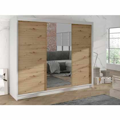 Trojdverová šatníková skriňa Geneva II, Farby: biely / dub artisan