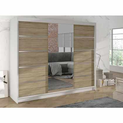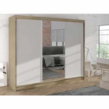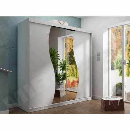 Šatníková skriňa so zrkadlom Sahara 8/200, Osvetlenie: bez osvetlenia, Farba:: Biela