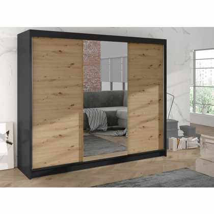 Trojdverová šatníková skriňa Geneva II, Farby: čierny / dub artisan