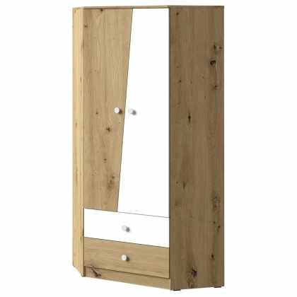 Rohová šatníková skriňa so zásuvkami Mauve WK02, Farby: dub artisan / biely