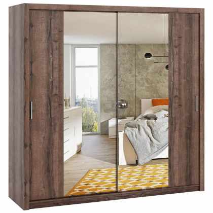 Šatníková skriňa so zrkadlom Sahara 8/200, Osvetlenie: bez osvetlenia, Farba:: jaseň tmavý