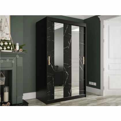 Šatníková skriňa so zrkadlom Nonnus 120 Pole, zásuvka: nie, Farby: čierna matná / čierna mramor
