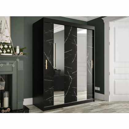 Skriňa s posuvnými dverami Nonnus 150 Pole, zásuvka: nie, Farby: čierna matná / čierna mramor
