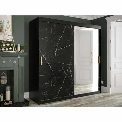 Šatníková skriňa Nonnus 200 T2, zásuvka: nie, Farby: čierna matná / čierna mramor