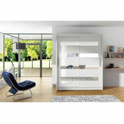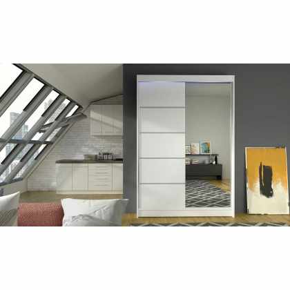 Skriňa s posuvnými dverami Presto XIII, Farby: biela / biela + zrkadlo, Osvetlenie: bez osvetlenia