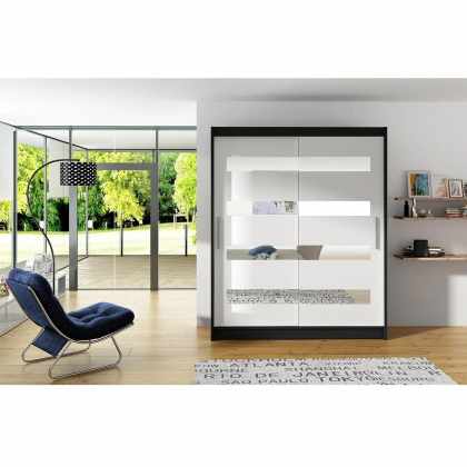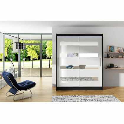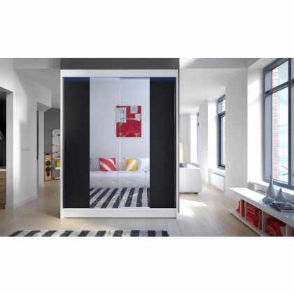 Skriňa s posuvnými dverami Presto XIII, Farby: čierna / biela + zrkadlo, Osvetlenie: bez osvetlenia