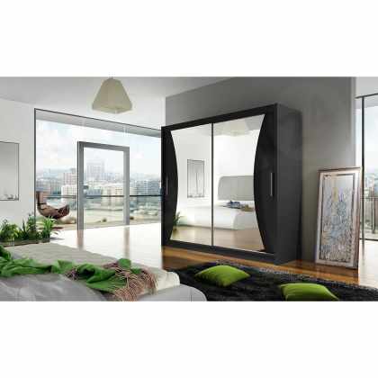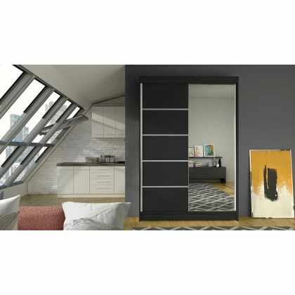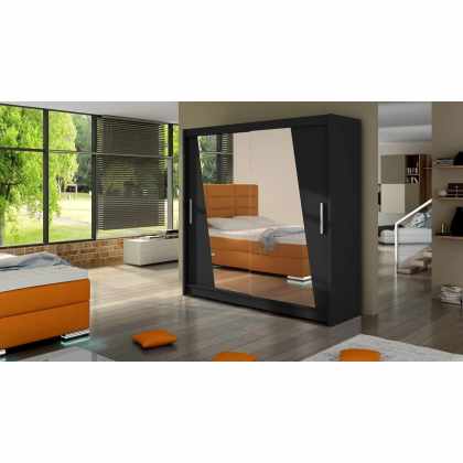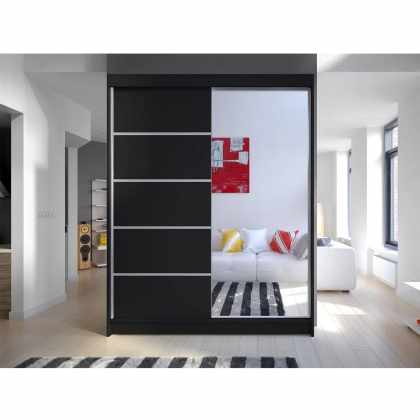 Posuvná skriňa London XIV, Farby: čierna / čierna + zrkadlo, Osvetlenie: bez osvetlenia