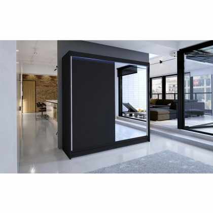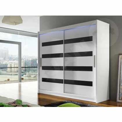 Skriňa s posuvnými dverami Presto XIII, Farby: čierna / biela + zrkadlo, Osvetlenie: osvetlenie LED RGB – farebné