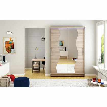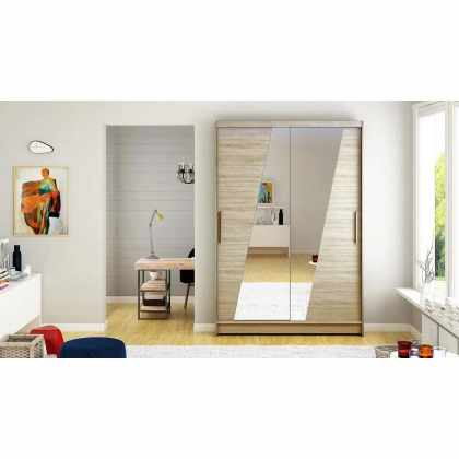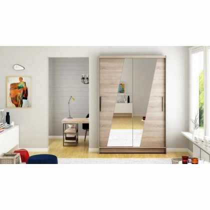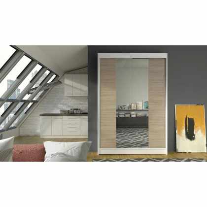 Šatníková skriňa s posuvnými dverami a so zrkadlom Kler SZ120 KE05, Farby: biely / dub monastery